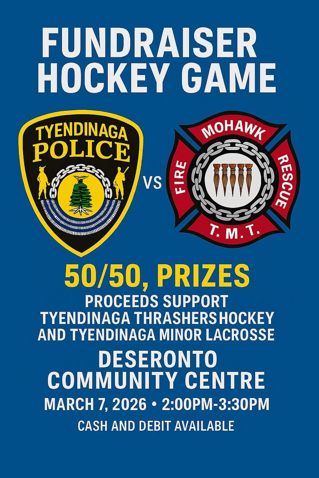 The Tyendinaga Police Service will square off against the Mohawk Fire Department in a hockey game this Saturday. The event will support the Tyendinaga...