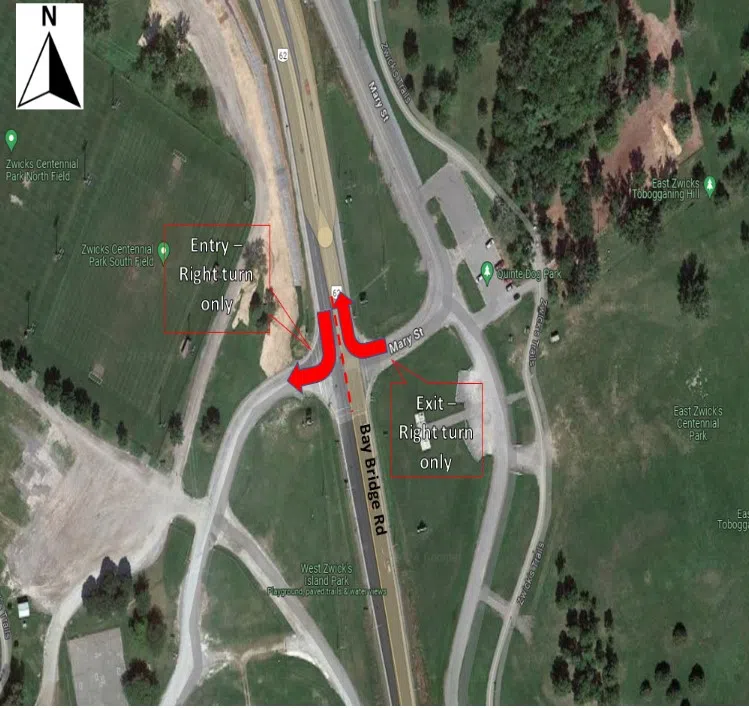 Anyone attending Zwicks Park to view the solar eclipse is encouraged to familiarize themselves with the traffic safety plan and lane restrictions. Entry into Zwicks Park will only be permitted for vehicles travelling southbound on Bay Bridge Road. Following the eclipse, vehicles exiting Zwicks Park will travel under the Bay Bridge and exit the park on the east side by the traffic lights. Exit will be a right turn only at the lights. (see below picture)