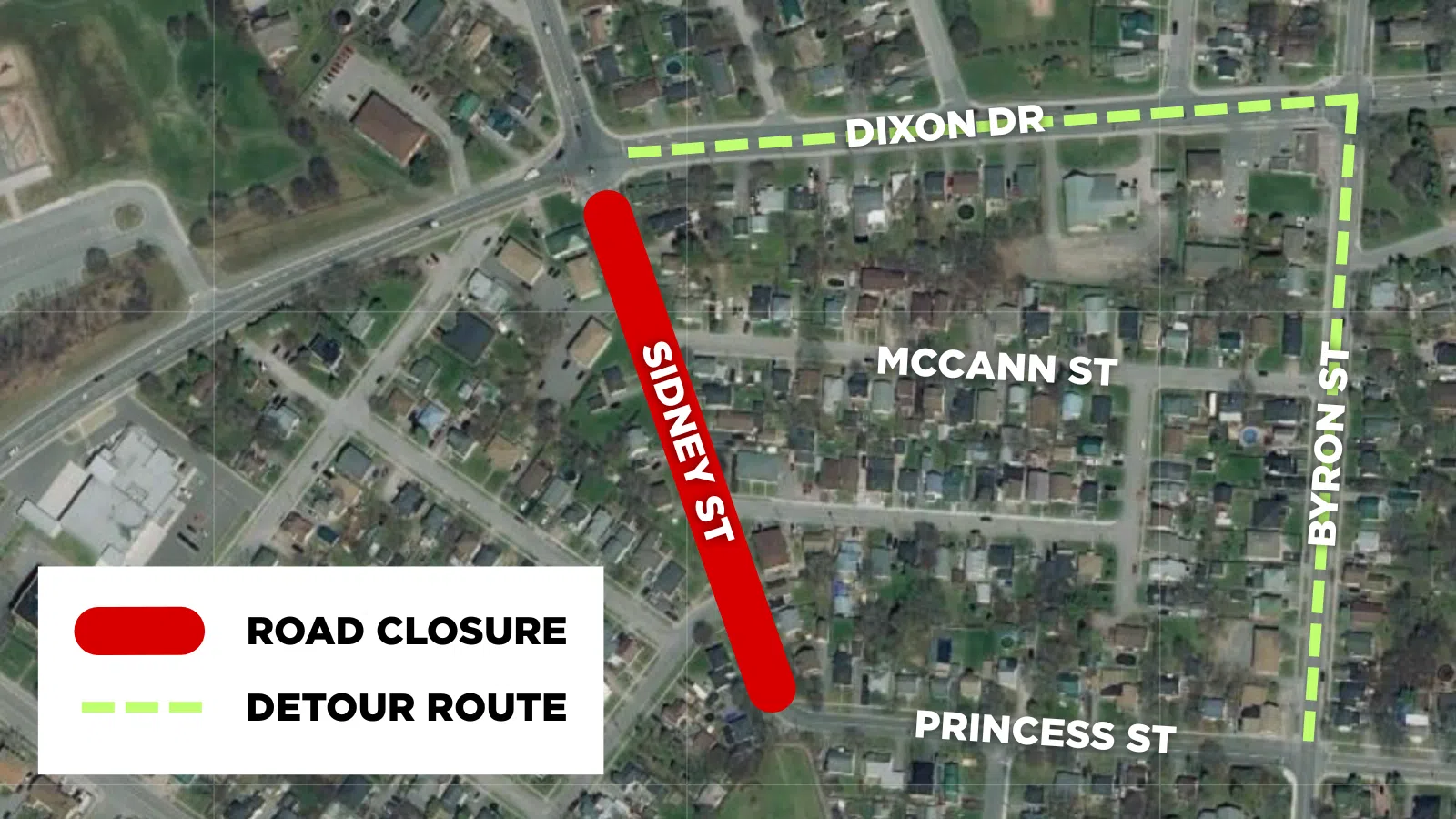 Sidney Street is closed as of today from Dixon Drive to Princess Street.