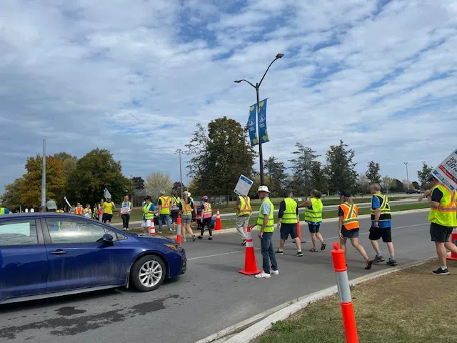 Speaking to 91X on the picket line today, OPSEU Local 421 President Tim Prewer said that members only have room to allow one vehicle stopped at a time. A facilities representative from the College visits the team when they are out to review any incidents, such as folks running the line, or misbehaving. Prewer noted that to date, no one from the College’s executive team has come out to the picket line to meet with members. He added that another letter has been sent to the College asking for a meeting on the line, in particular addressing safety concerns. Prewer noted that members would like to be able to have multiple vehicles safely line up off of Wallbridge-Loyalist Road and further along the college roadway.